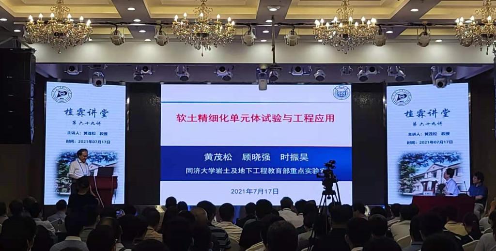 2021年7月17日上午,beat365正版举办《植霖讲堂》第六十九讲。邀请国家杰出青年科学基金获得者、百千万人才工程国家级人选、同济大学特聘教授、岩土及地下工程教育部重点实验室主任黄茂松教授作题为“软土精细化单元体试验与工程应用”的学术讲座。beat365正版苏跃宏教授主持讲座,公司师生共200余人聆听了报告会。