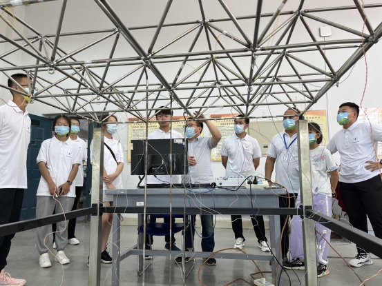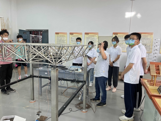 参观过程中,史勇老师、王利辉老师与营员们进行了互动交流,指导营员们现场体验了建筑结构抗震实验、平面桁架实验,提醒大家在今后的学习中要树立探索求知明理的求学理念,培养科学的认知态度。