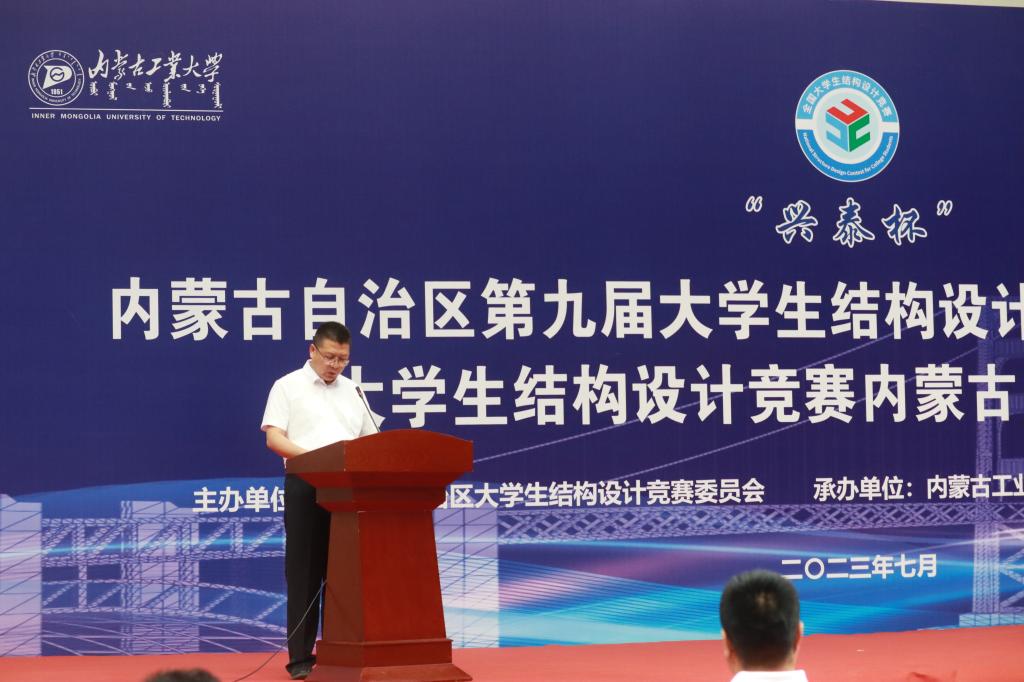 内蒙古自治区老员工结构设计竞赛委员会秘书处秘书长冯斌教授介绍了学科竞赛的重要性,他表示结构设计竞赛能够激发老员工的创新意识,培养老员工的科技创新、团队协作和实践能力,加强高校员工之间的交流与合作,推进实践公司产品改革,提高人才培养质量。