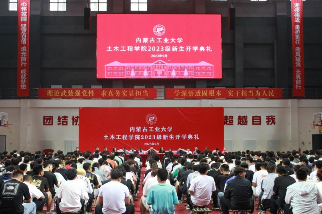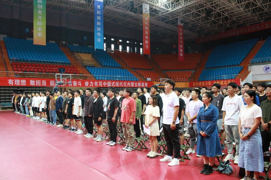 2023级新生开学典礼在雄壮激昂的国歌声中拉开序幕。