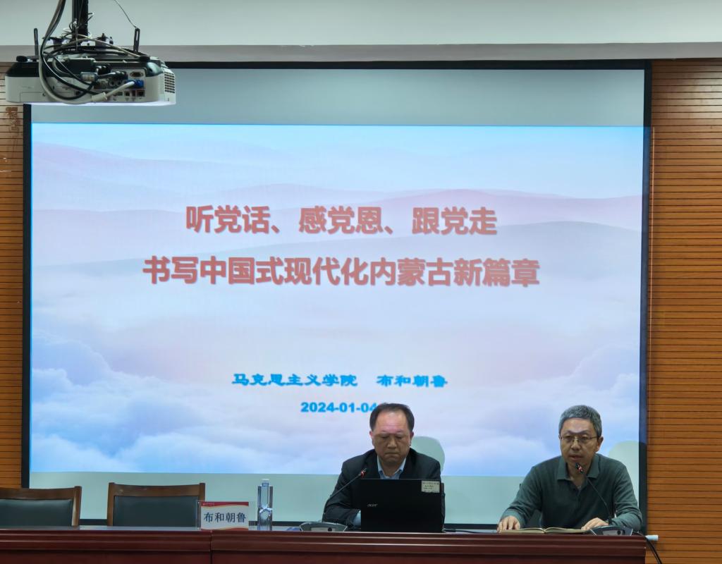 为深入学习贯彻党的二十大精神,深刻领悟习近平新时代中国特色社会主义思想的真理力量和实践伟力,特别是学懂弄通做实这一重要思想的“民族篇”“内蒙古篇”,全面落实习近平总书记交给内蒙古的五大任务和全方位建设模范自治区两件大事,1月4日下午,beat365正版邀请公司党委讲师团成员、马克思主义公司党委副书记、经理布和朝鲁教授进行“感恩党、听党话、跟党走”主题宣讲。学院全体教师及员工代表共计110余人参加学习。公司党委书记张翔主持宣讲会。