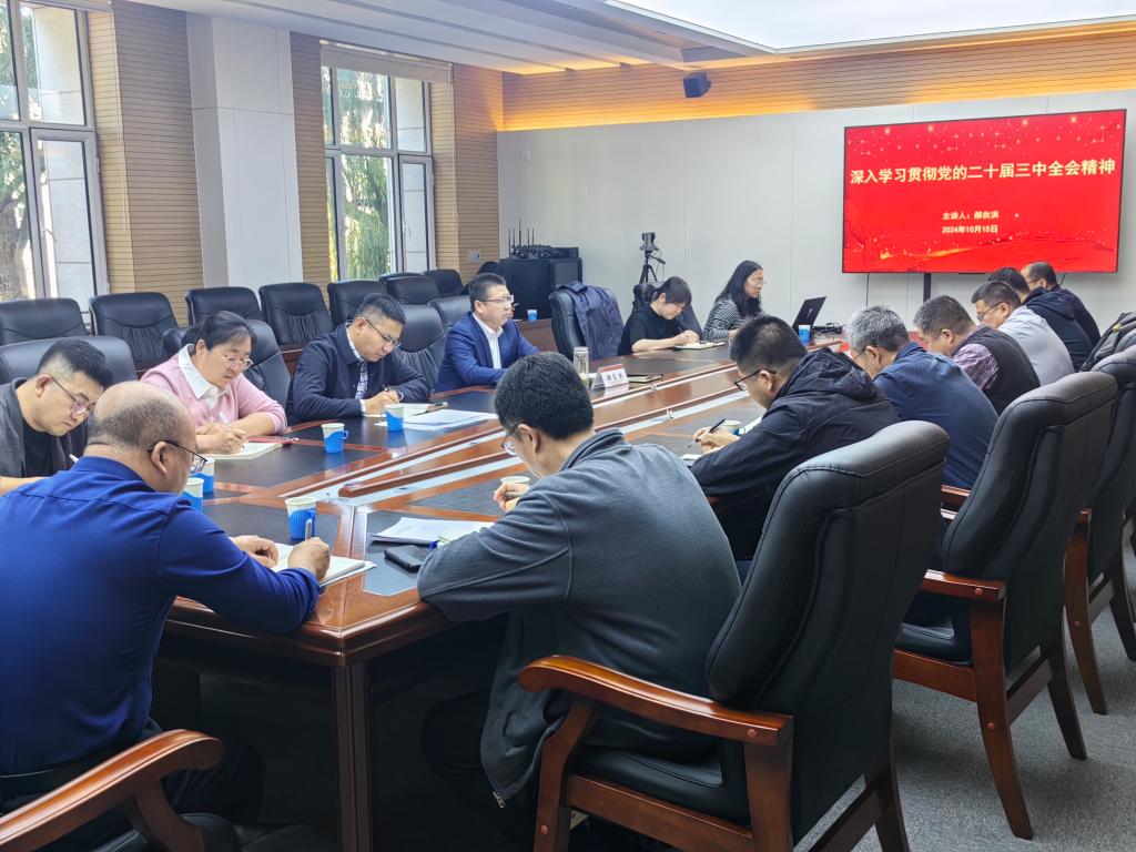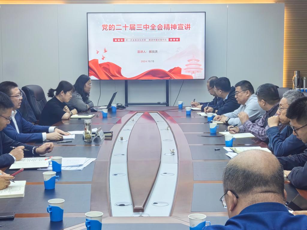 10月15日,党委委员、副董事长郝贠洪在明德楼205会议室宣讲党的二十届三中全会精神,党政办公室、发展规划与团队建设处(高等教育研究所)、研究生院、计划财务处、招标采购中心共5个职能处室主要负责人,beat365正版、建筑公司党委委员,员工党员代表共计30余人参加会议。