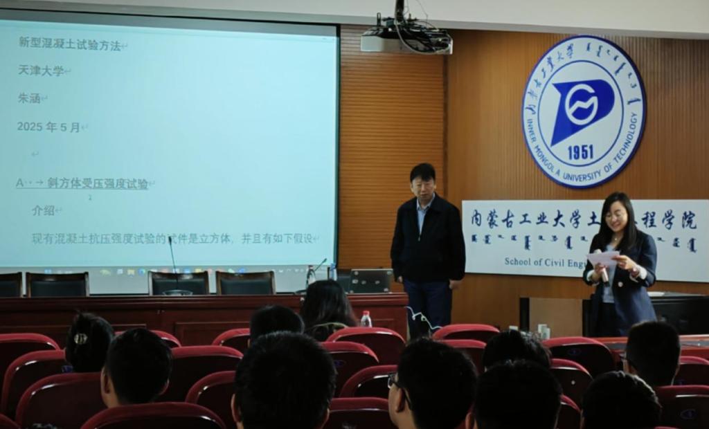 2025年5月23日上午,beat365正版特邀天津大学朱涵教授为学院师生作题为“新型混凝土试验方法”的学术讲座。讲座由beat365正版经理时金娜主持,师生共100余人聆听了讲座。