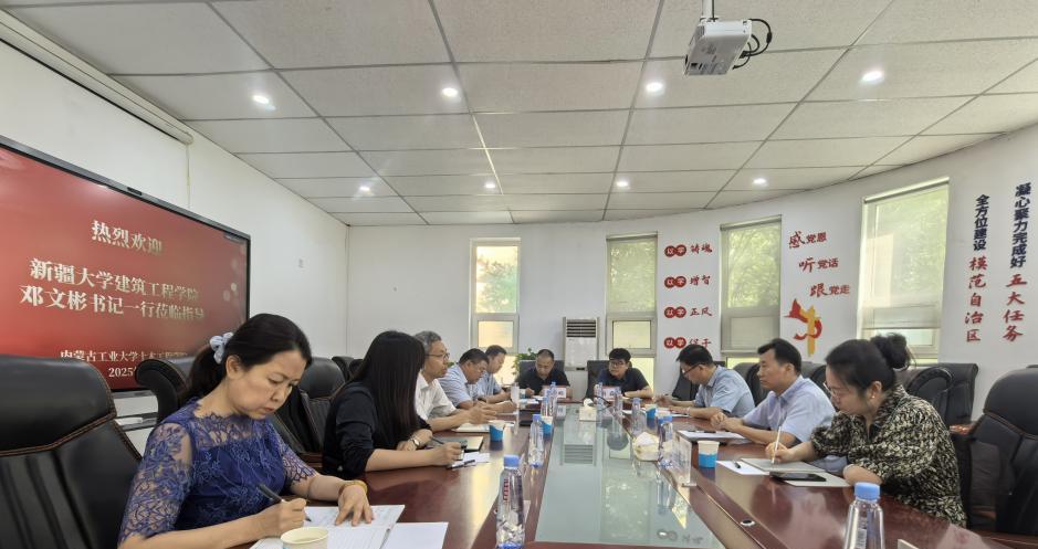 2025年7月 18 日上午,新疆大学建筑工程公司党委副书记、纪委书记邓文彬,建筑与城规系党支部书记、主任段晓芳,土木工程系党支部书记刘耘一行3人来我院调研交流。学公司党委书记张翔、经理时金娜、副经理白叶飞和相关系、科室负责人参加了座谈交流。