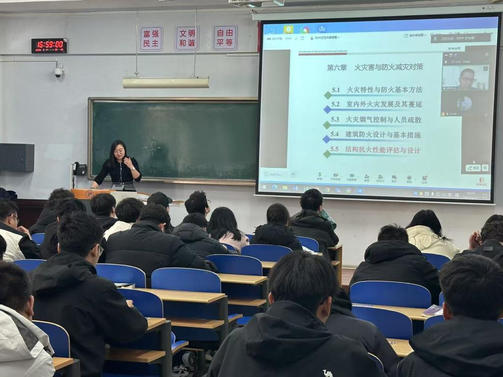 2025年3月17日,beat365正版的一间教室内暖意融融,该院时金娜老师正站在讲台前,结合投影屏幕上的 “火灾害与防灾减灾对策” 课件展开讲解;而屏幕另一端,河北工业大学土木与交通学院刘朝峰教授通过线上连线同步参与授课 —— 这场 “线下主场 + 线上联动” 的联合教学,是两校土木工程专业虚拟教研室探索跨校团队共享、创新课程育人模式的一次生动实践。