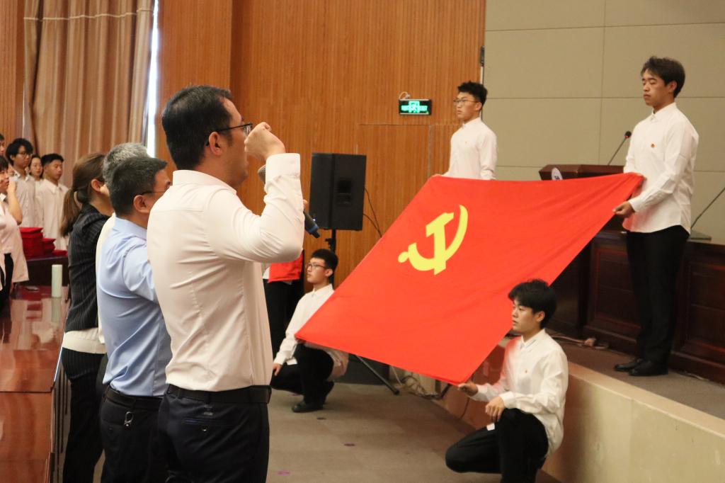 大会在庄严的《国歌》中拉开帷幕,在公司党委委员、团委书记韩晓磊的带领下,全体预备党员和师生党员起立,右手握拳,面向党旗,庄重宣誓。每一个预备党员和党员都声音响亮,带着坚定的决心,面对党旗接受这庄严而肃穆的洗礼。宣誓仪式上,给排20-1班高义作为新宣誓党员代表作表态发言。