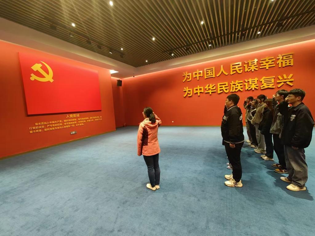 展厅中,党员们面对鲜红的党旗高举右拳,庄严宣誓。铿锵有力的宣誓声响彻大厅,激励大家弘扬伟大建党精神,坚定入党初心和使命,强化党员意识和党性观念,践行责任使命担当。