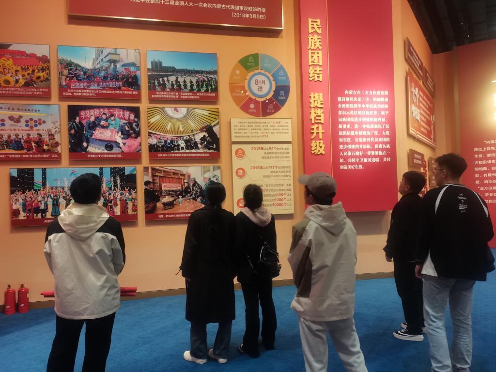 走进“感党恩、听党话、跟党走”主题展厅,一幅幅图片、一张张图表、一段段文字、一件件文献档案展品,全面展示了内蒙古在革命、建设、改革各个历史时期,不论面临多少困难和挑战,各族人民对党的热爱和忠诚都毫不动摇。