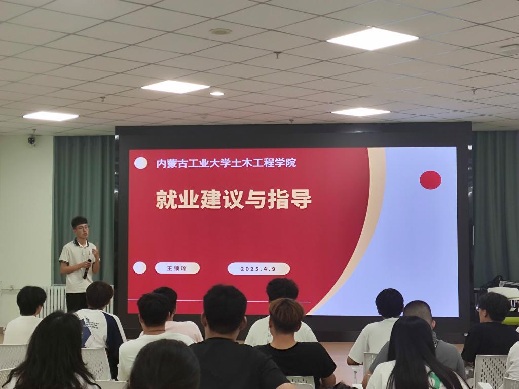 接下来是王锁玲为大家分享“学长说就业”。他结合自身求职经历,详细讲解土木工程行业就业形势、简历制作技巧、面试应对策略,以及施工单位、设计院、房地产企业等不同岗位的职业发展路径,并提醒同学们关注行业新兴领域,如绿色建筑、智能建造等,把握就业新机遇。