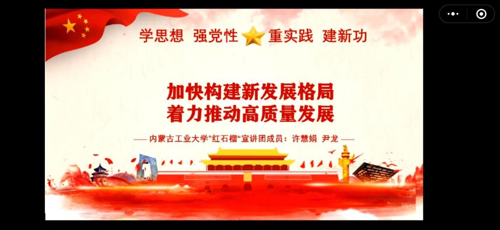 许慧娟同学以“加快构建新发展格局,着力推动高质量发展”为题,从“新发展格局的内涵和重要性”、“高质量发展的内涵和重要性”、“新时代展望内蒙古新未来”这三个方面展开讲述,最后,她将内蒙古建设的五大任务与习近平总书记寄语“把祖国北疆这道风景线打造得更加亮丽”相结合,倡导同学们助力中国实现社会主义现代化强国建设。