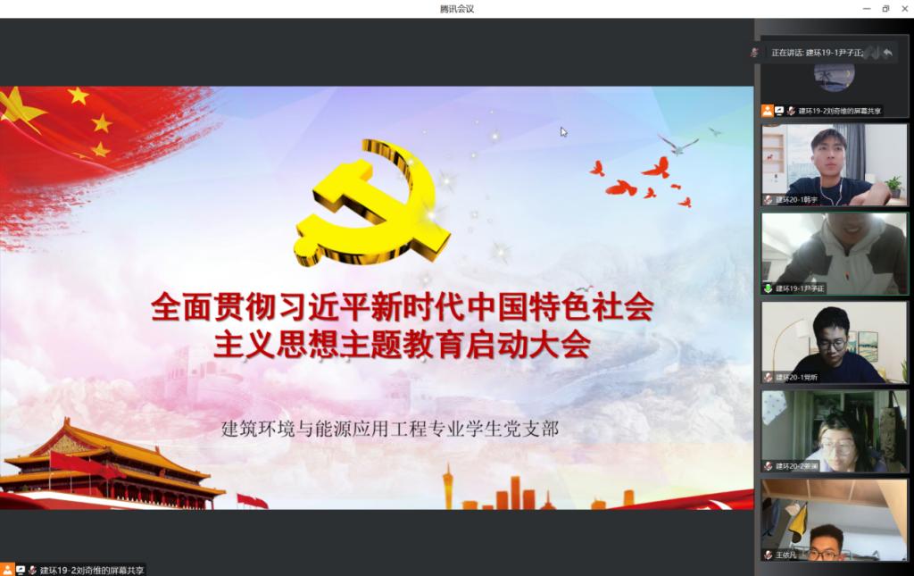 建筑环境与能源应用工程专业员工党支部于2023年4月24日线上腾讯会议召开了全面贯穿习近平新时代中国特色社会主义思想教育启动大会,会议应到党员16名,实到16名,本次支部大会由刘奇维同志主持。