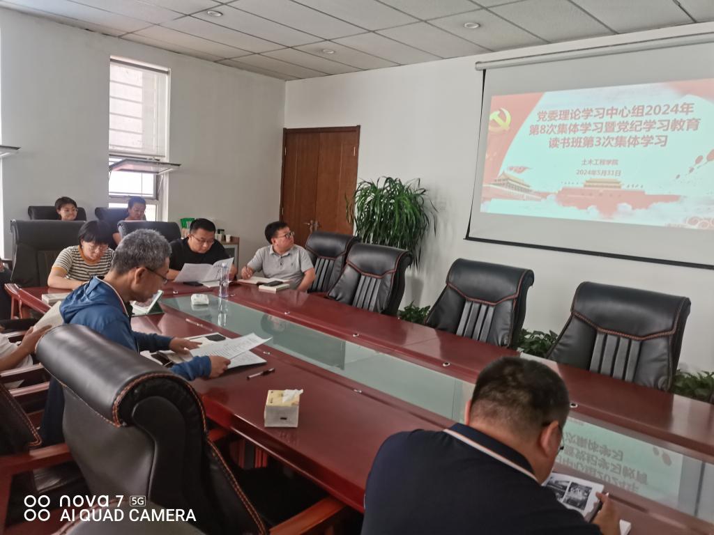 5月31日下午,公司党委理论学习中心组第8次集体学习暨党纪学习教育专题读书班第3次集体学习在土木馆A210会议室举行。公司党委委员参加学习,党委书记张翔主持学习会。