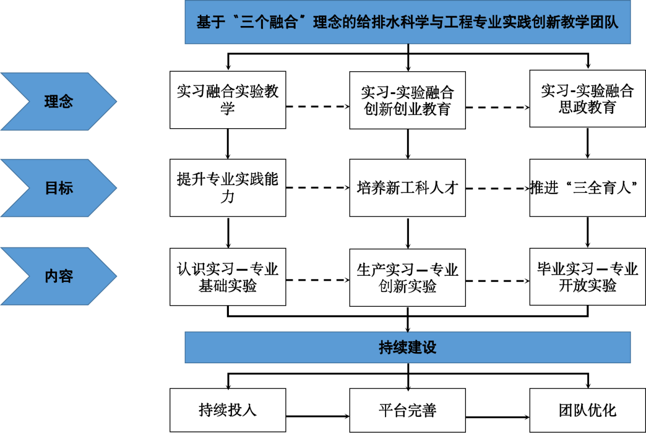 图1贯穿“三个融合”理念的给排水科学与工程专业实践创新教学团队建设