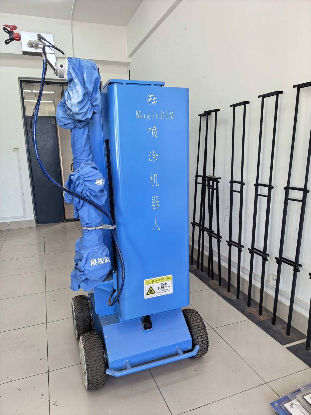 此室内喷涂机器人是一种自动化设备,通过编程控制实现涂料的精准喷涂。聚焦全屋智能施工,专为高度3.2米以下的室内涂料施工场景设计,适用于住宅、公寓、酒店等空间,能覆盖墙面、天花板、阴阳角、飘窗、玄关等施工场景,实现全屋自动化腻子、乳胶漆喷涂施工,在智能化施工流程方面,P320 Max支持CAD图纸、BIM模型一键导入,依托先进算法,便捷完成全户建图和作业路径规划,高度适配批量全屋自动化施工需求,显著降低人工测绘与路径规划的时间成本,推动智能建造从单点作业向系统化、规模化施工迈进。